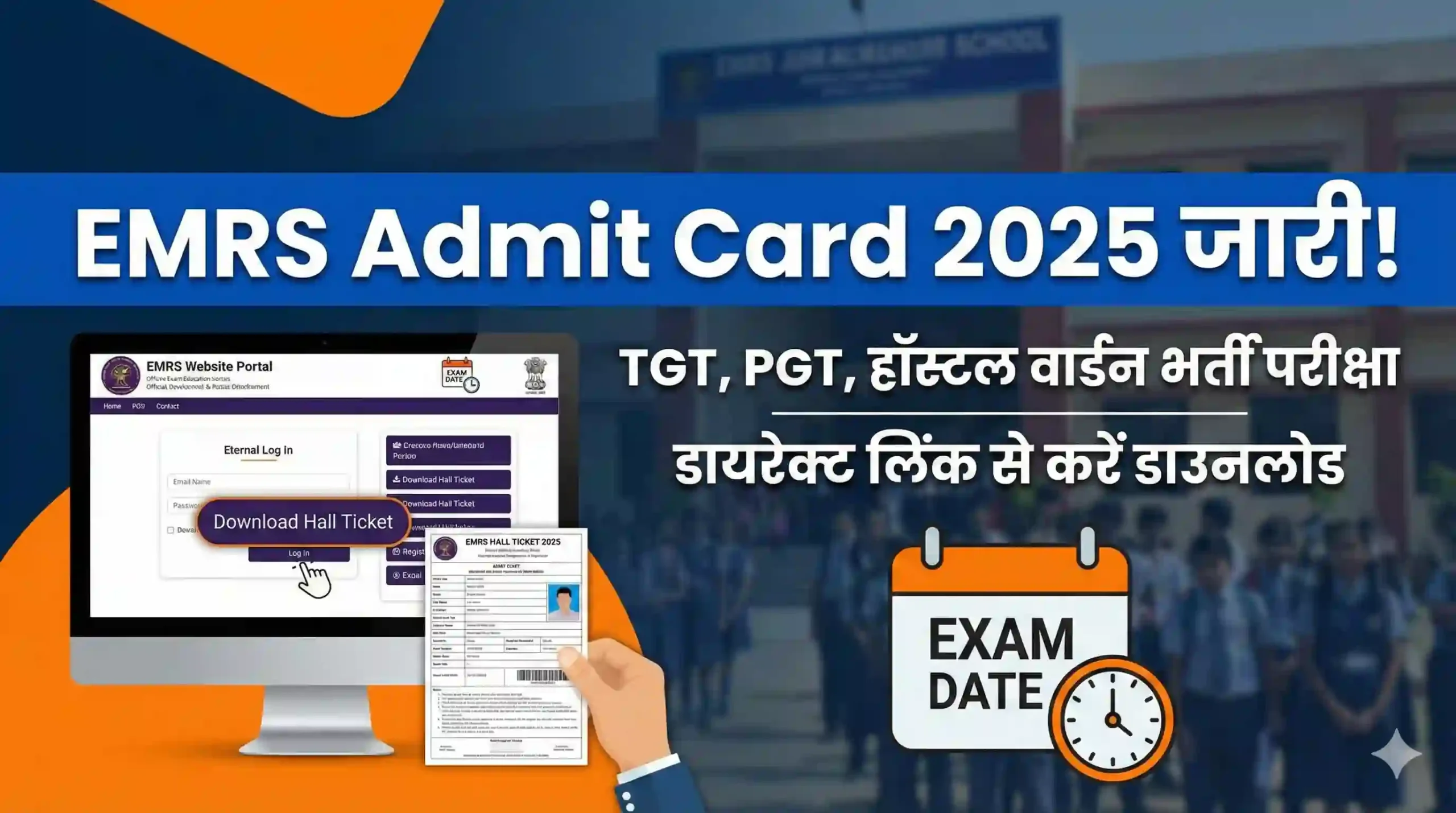 How to Download EMRS ADMIT CARD: सरकारी शिक्षक बनने का सपना देख रहे लाखों युवाओं के लिए आज का दिन बेहद महत्वपूर्ण है। एकलव्य मॉडल रेजिडेंशियल स्कूलों (EMRS) में टीचिंग और नॉन-टीचिंग पदों पर भर्ती के लिए आवेदन करने वाले उम्मीदवारों का इंतजार आखिरकार खत्म हो गया है।