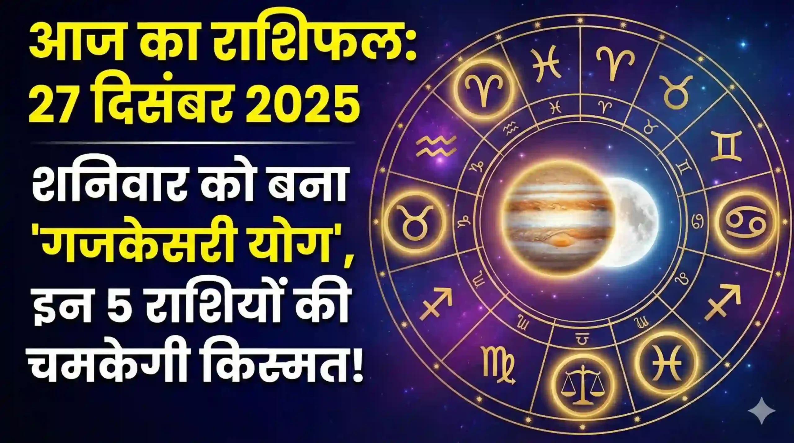 Aaj Ka Rashifal: आज 27 दिसंबर 2025 है और दिन शनिवार है। यह साल 2025 का आखिरी शनिवार है, जो ज्योतिषीय दृष्टिकोण से बेहद खास बन गया है। आज चंद्रमा (Moon) अपनी राशि बदलकर मीन (Pisces) में गोचर कर रहे हैं, जहां वे देवगुरु बृहस्पति के साथ मिलकर अत्यंत शुभ ‘गजकेसरी योग’ का निर्माण कर रहे हैं।
